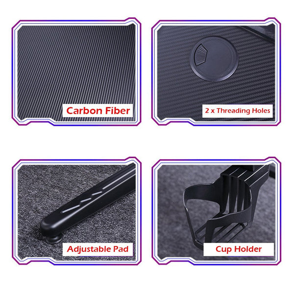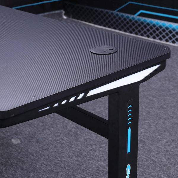 Our Gaming Desk features a spacious tabletop for ultimate gaming gear. Carbon fiber surface features with a smooth and gorgeous texture. The ergonomically contoured desktop allows a closer distance to the gaming screen. With its L-shaped legs, it provides an extremely steady construction which has a 100kg high bearing capacity. Moreover, reinforced braces, round edges, and floor protector to enhance its premium quality details. Get your game on with our stylish gaming desk.