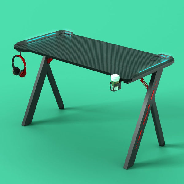 120cm RGB Gaming Desk Home Office Carbon Fiber Led Lights Game Racer Computer PC Table Y-Shaped Black