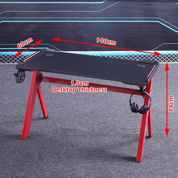 140cm RGB Gaming Desk Home Office Carbon Fiber Led Lights Game Racer Computer PC Table Y-Shaped Red