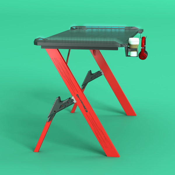 Our Gaming Desk features a spacious tabletop for ultimate gaming gear. Carbon fiber surface features with a smooth and gorgeous texture. The ergonomically contoured desktop allows a closer distance to the gaming screen. With its Y-shaped legs, it provides an extremely steady construction which has a 100kg high bearing capacity. Moreover, reinforced braces, round edges, and floor protector to enhance its premium quality details. Get your game on with our stylish gaming desk.