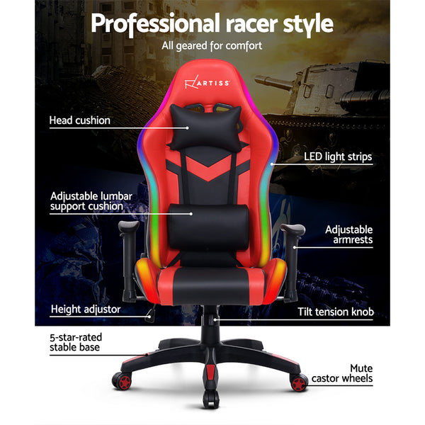 Artiss Gaming Office Chair RGB LED Lights Computer Desk Chair Home Work Chairs