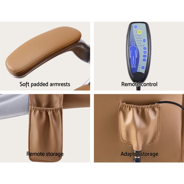 As you sit in the high-back premium faux leather seat, you have at your fingertips a wired remote control that brings on a soothing eight-point vibration massage aimed at four different parts of your body: upper and lower back, hips, and thighs. Choose from five vibration modes with four intensity levels and let the massage chair do its magic to relieve back tension, soothe aching muscles and provide all-round comfort. You can set it for 15, 30 or 60 minutes, perfect for that power nap or lunch break.
