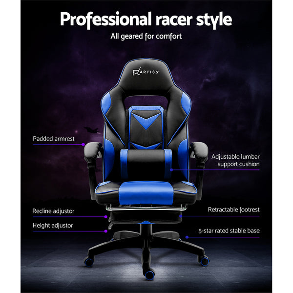 Artiss Office Chair Computer Desk Gaming Chair Study Home Work Recliner Black Blue