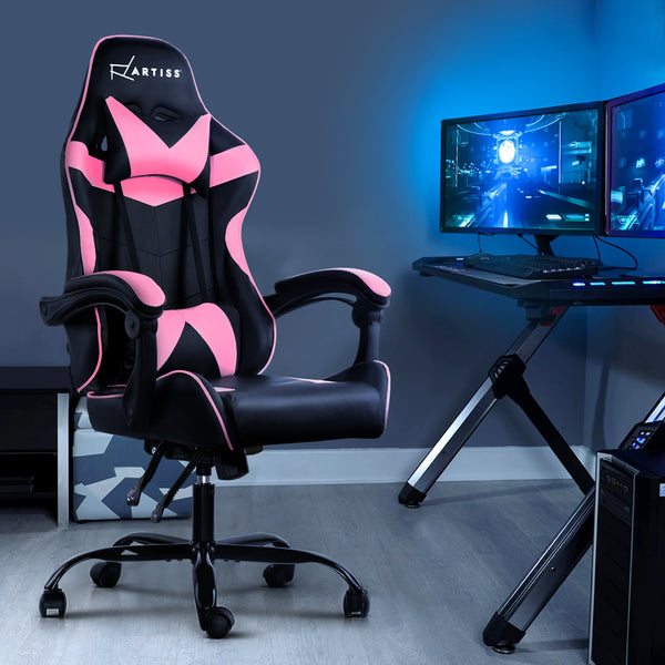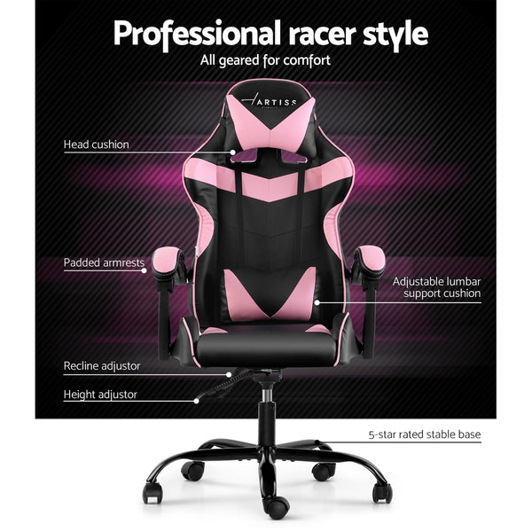 Artiss Office Chair Gaming Chair Computer Chairs Recliner PU Leather Seat Armrest Black Pink