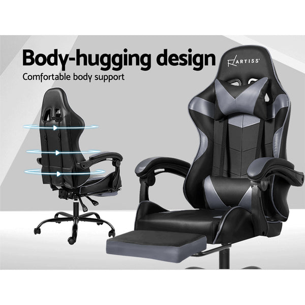 Artiss Office Chair Gaming Chair Computer Chairs Recliner PU Leather Seat Armrest Footrest Black Grey