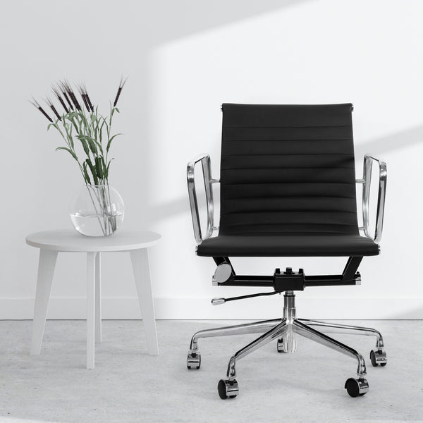 Milano Home Office Computer Chair PU Leather Adjustable Seat Mid Back Black