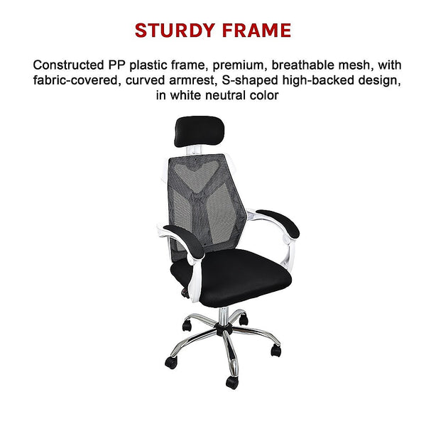 Office Chair Gaming Computer Chairs Mesh Back Foam Seat - White