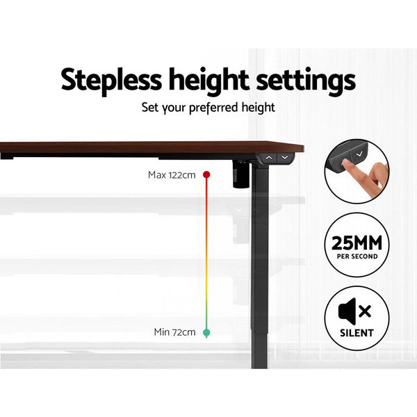 Artiss Standing Desk Adjustable Height Desk Electric Motorised Black Frame Walnut Desk Top 140cm