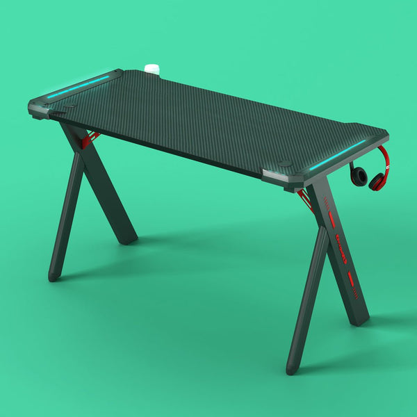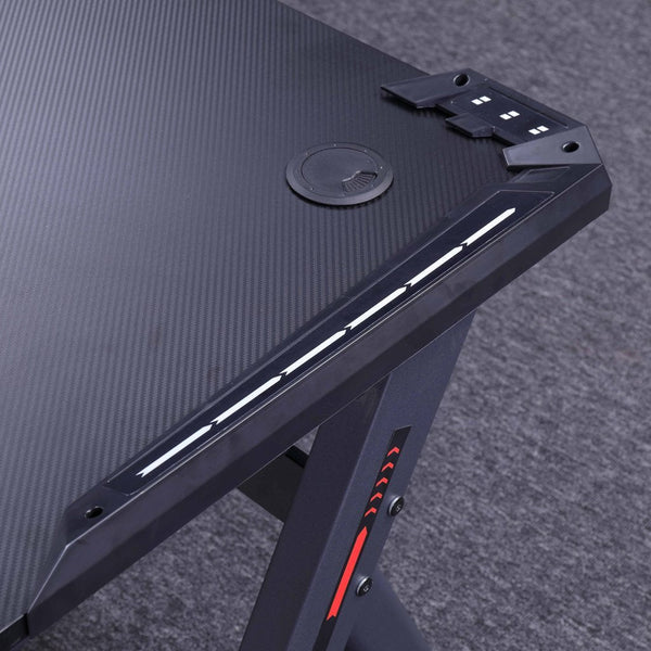 140cm RGB Gaming Desk Home Office Carbon Fiber Led Lights Game Racer Computer PC Table Y-Shaped Black