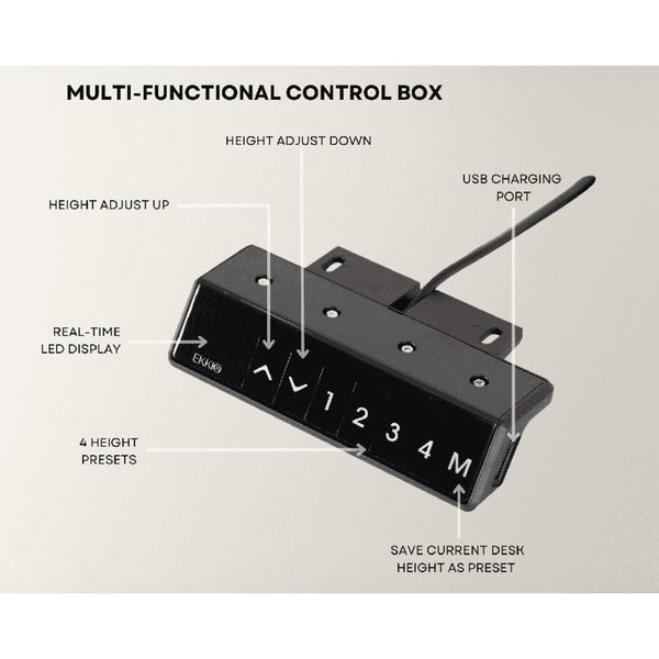 You can now have a choice of working while sitting or standing with our Motorized Adjustable Desk Frame. Using the smooth step-less motorized height and length adjustment, you can adjust the frame spatial measurements to suit your working preference. It is most compatible with desktops ranging from 60cm to 175cm in length and 60cm to 80cm in width. With the Frame, you can choose to sit when necessary or stand whenever you need to stretch your muscles or recharge your energy level when lethargy sets in from excessive sitting. The Motorized Adjustable Desk Frame also has an easy-to-use control panel and includes notable features such as smooth, ultra-quiet operation, low energy consumption, high-quality powder-coated frame and components, and height-adjustable rubber footings for extra stability.