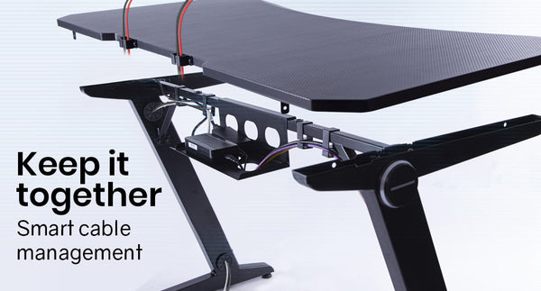 We know you\'ve got a heap of gear to hook up, and so you\'ll love the wide range of options the DX2 series offers. There\'s a powerboard ledge for hooking up your monitors, tower and sound gear, accompanied by cable runners to keep things tidy underneath and behind the desk. There are even grommets in the frame that give you the option of hiding cabling through either leg.