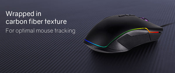 The desktop is wrapped in carbon fiber texture which not only looks the goods, but ensures the ultra-responsive mouse tracking you need to stay at the top of your game.
