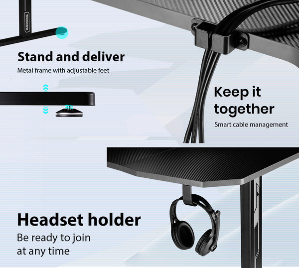 OVERDRIVE Gaming Desk 139cm PC Table Setup Computer Carbon Fiber Style Black