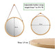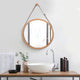 Hanging Round Wall Mirror 38 cm - Solid Bamboo Frame and Adjustable Leather Strap for Bathroom and Bedroom