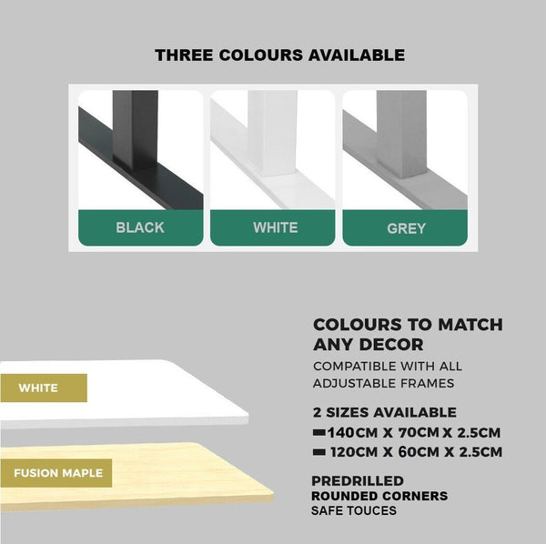 140cm Standing Desk Height Adjustable Sit Stand Motorised White Single Motor Frame Maple Top