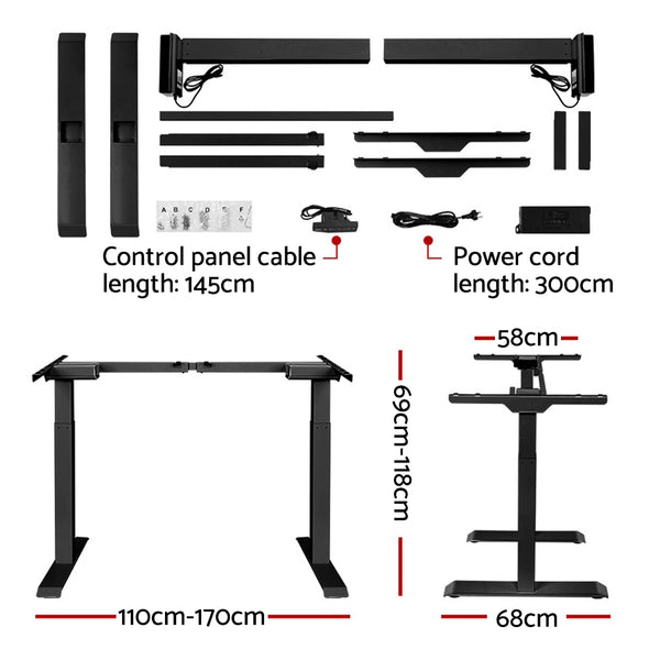 Artiss Standing Desk Adjustable Height Desk Dual Motor Electric Black Frame Desk Top 140cm