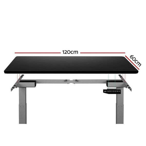 Artiss Standing Desk Adjustable Height Desk Dual Motor Electric Grey Frame Black Desk Top 120cm
