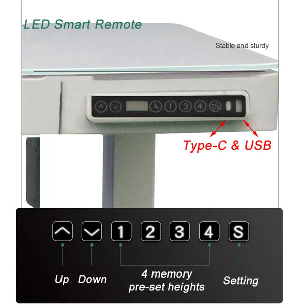 Furnish your home or office with this electric standing desk with adjustable height to experience a modern way of working. Featuring dual motors, the desk offers fast height adjustment. The toughened glass top of the desk is equipped with an LED control panel, making it easier for you to control the height adjustment. Moreover, the height adjustment is step-less, allowing you to alternate from sitting to standing at the most comfortable position. For better balance and protection, the motorized table is built with an extended base and a child safety lock. Most importantly, the electric standing desk comes with a convenient charging system, including one 15w wireless charger, charging ports of one USB and one type-c, which is sufficient enough for you to charge different electronic devices. Made of preferably SPCC cold-rolled carbon steel plate, the electric standing desk is designed for superior durability and easy maintenance.