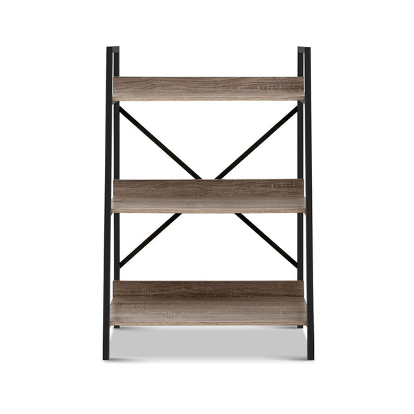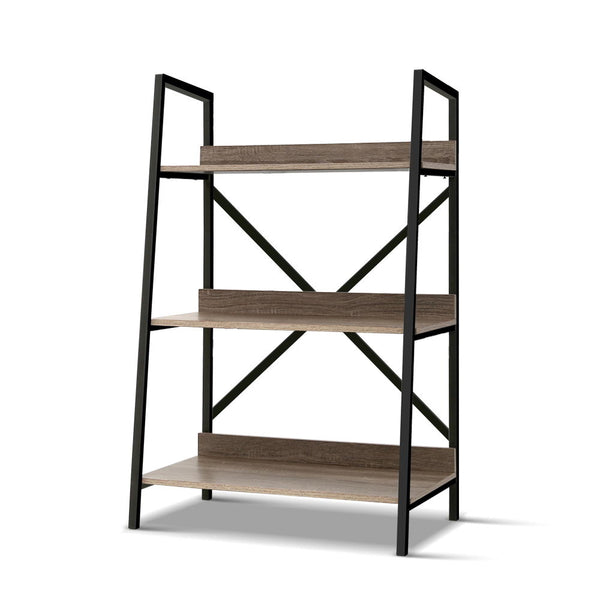 Artiss Bookshelf 3Tier Metal Bookcase Bookshelves Oak Book Shelf Display Storage